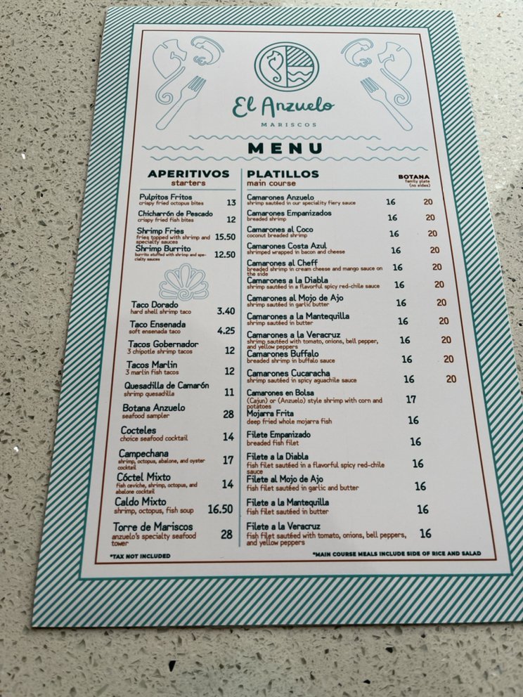 Mariscos El Anzuelo Menu (Update 2025)